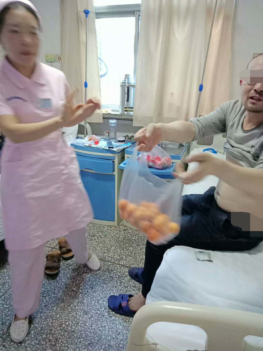 同日,护士刘立在为病人做健康宣教时得知患者想吃裕隆超市的新鲜水果。但又因路途远行走不太方便。刘立护士主动说我一会就下班了,上班路上我给你买好带过来吧,患者收到自己想吃的水果后吃的很幸福,很满足。刘立护士说每次看到患者因为自己做的一些小事而露出开心的笑容的时候自己也会很开心,从来不会觉得下班了为患者服务是在耽误自己的时间!