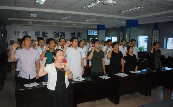 院长助理、医务科科长李院长带大家宣读了《医师宣言》,医师宣言的核心精神是“平等仁爱、患者至上、真诚守信、精进审慎、廉洁公正、终生学习”。