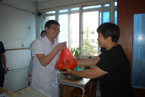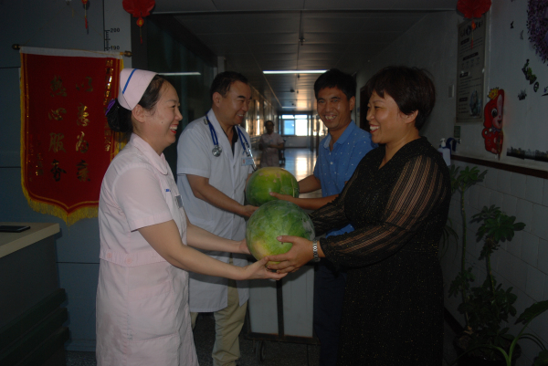 院们来到医院各个科室,将分装好的消暑品送到了医务人员手中,深入了解并关心职工的工作环境和现状,感谢他们坚守工作岗位,坚持以饱满的热情为医院的发展建设贡献力量,为百姓的健康保驾护航。并叮嘱他们在高温季节要注意防暑降温、劳逸结合,提高自我保护意识,保障医疗安全,以饱满的精神和热忱的态度为患者提供优质、高效的医疗服务。