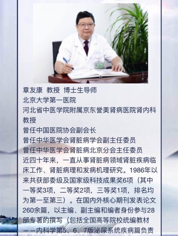 09:20-09:50 题目:《遗传性肾病的诊治》 主讲人:北京大学一医院 章友康