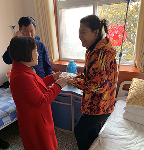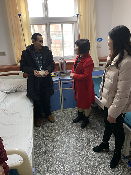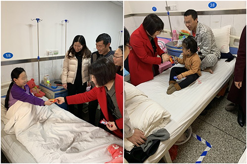 新春送祝福 誉美年味浓 ——河南誉美肾病医院院给患者拜年 “新年快乐!祝大家猪年大吉,幸福安康!”2月5日大年初一早8点,伴着新年钟声的余韵,河南誉美肾病医院院长助理李院长、耿祥玉以及护理部医生徐振霞,一同到病区给住院患者拜年,送上新春的祝福。 步入病区,处处洋溢着浓浓的节日气氛,医院挨个向仍在住院的患者送去问候,并代表誉美全体员工祝他们新春愉快,万事如意,鼓励他们要树立信心,安心治疗,争取早日。在拜年时,医院还贴心地为小患者准备了红包和糖果。 大年初一给住院患者拜年是河南誉美肾病医院坚持多年的传统。一句祝福、一份关怀、一句问候,让这些住院患者倍感温暖和温馨,深受鼓舞。虽然没能回到自己的小家团年,但在这个大家庭里一样感受到了浓浓的新年气息和阵阵暖意!