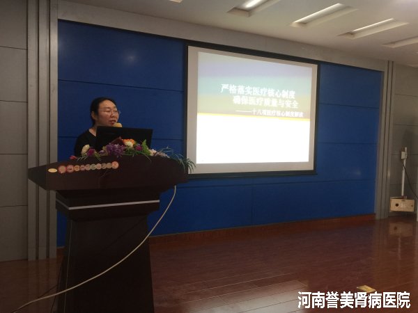 接着,医务科李院长医生就严格落实医疗核心制度确保医疗质量与安全——十八项核心制度解读,细致地对每项制度的具体要求、注意事项展开阐述。李医生强调,医疗核心制度是确保医院医疗质量、规范诊疗行为的制度,每位医务人员都要严格遵守并落实到各项诊疗活动中,做到人人知晓,学以致用。