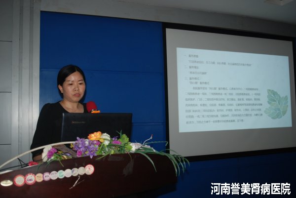 提升服务品质 河南誉美肾病医院举行后勤外包科室服务礼仪培训 为提升我院服务质量和患者满意度,树立正确的服务观念,2019年5月13日下午,医院邀请了护理部徐振霞医生对餐厅、保洁等外包科室就“服务礼仪知识”进行了全面系统的培训。 培训中,徐振霞医生从行为规范、语言规范、电话礼仪、仪容仪表等方面由表及里、由浅入深地讲解了服务礼仪的重要性。通过采取理论和实践相结合的方式,对服务人员的行姿、文明用语、表情、着装等方面进行了讲授,图文并茂地阐述了礼仪在服务工作中的重要性及注意事项。 宋国山医生强调,优质服务是河南誉美在三十年中收获无数口碑的根基,随着社会发展和医改需求,患者对优质服务的要求也在不断提升。医院服务人员也必须转变观念,时刻学习,才能满足患者多样化的服务需求。 此次培训贴合工作实际,获得参会人员的一致好评。参与培训的职工纷纷表示,本次培训很实用,提升了大家知礼仪、懂礼仪、讲礼仪的文明意识,增进了个人职业素养。相信在以后的工作中大家一定能把所学的礼仪知识运用到日常工作中,进一步优化后勤服务,提升患者的满意度。