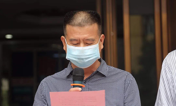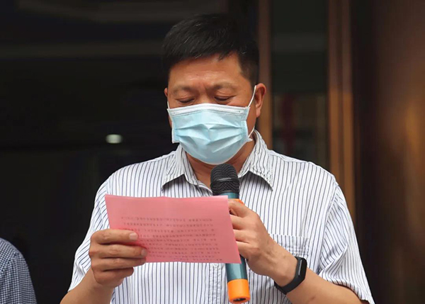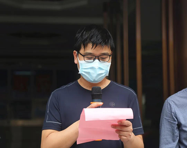 *县卫健委党组书记、医生黄太会宣读2020年招募造血干细胞志愿者倡仪书