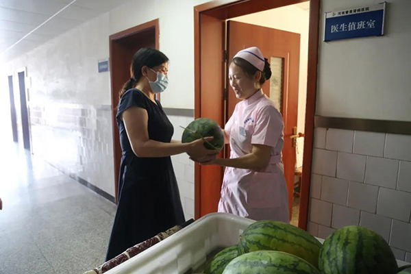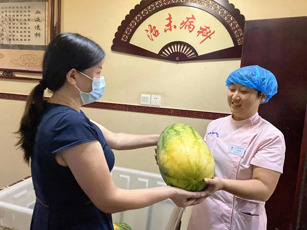 为医护人员送消暑慰问品是河南誉美肾病医院每年坚持的活动,吃到甘甜的西瓜大家都非常开心,纷纷表示:感谢院对我们医务人员的关心,我们将会拿出全部干劲,用心服务好每一位患者!