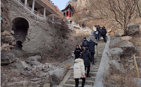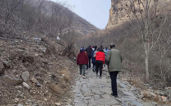 冒着微微寒风,大家身着简单轻便的运动装、登山鞋,在山脚集合开始出发。