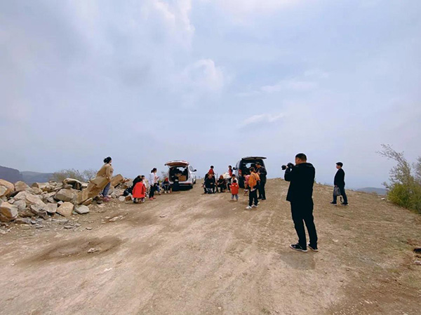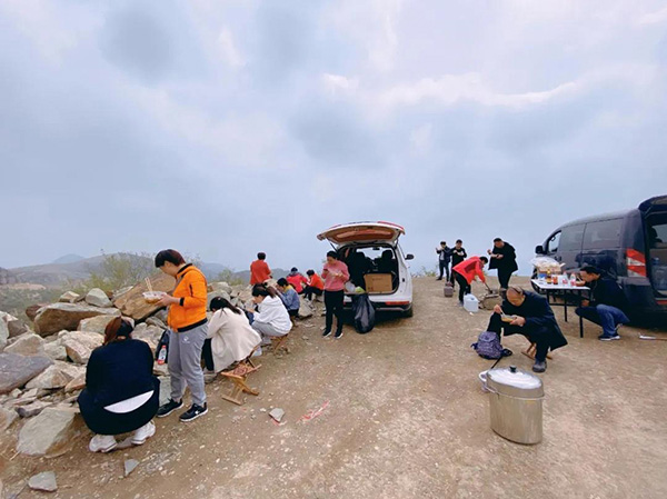 本次春游登山活动路线为朝阳山-尖山-地谷岭-朝歌寨。上午9点30分,伴着微微春风,大家向目的地出发。
