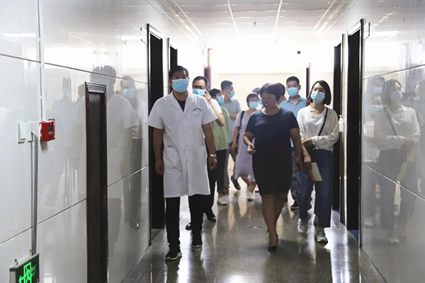 京东誉美医院一行在梁红副院长的带领下实地参观了我院检验科及各临床科室。干净整洁的病房环境、整齐统一的标识标牌、井井有条的医护流程给兄弟单位的同事们留下了深刻印象,赢得了一致赞许。
