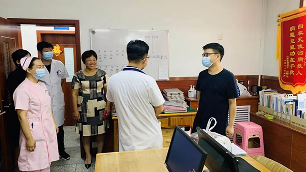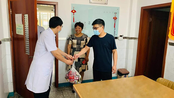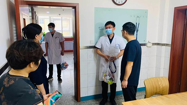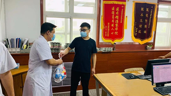 李志强院长来到医院各个科室,将分装好的消暑品送到了医务人员手中,感谢他们坚守工作岗位,为百姓的健康保驾护航,并叮嘱他们在高温季节要注意防暑降温、劳逸结合,保障医疗安全。