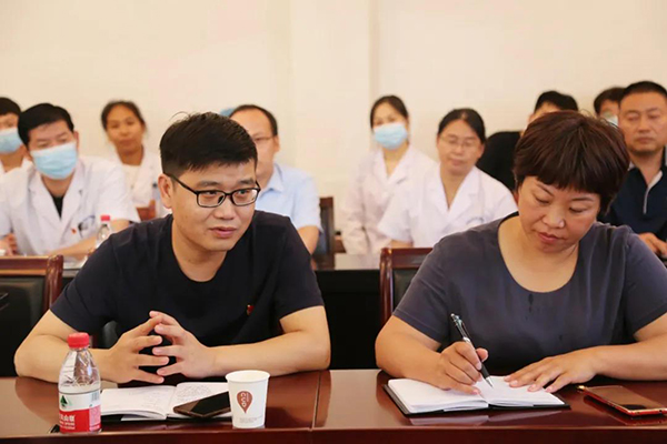 在随后的座谈会上,市场监督管理局副局长李秀娟、广告股股长孔繁华、价格股股长冯素芳、药化股股长刘卫君分别为我院讲解了党史、广告、药品价格、医疗器械监督管理等相关知识。