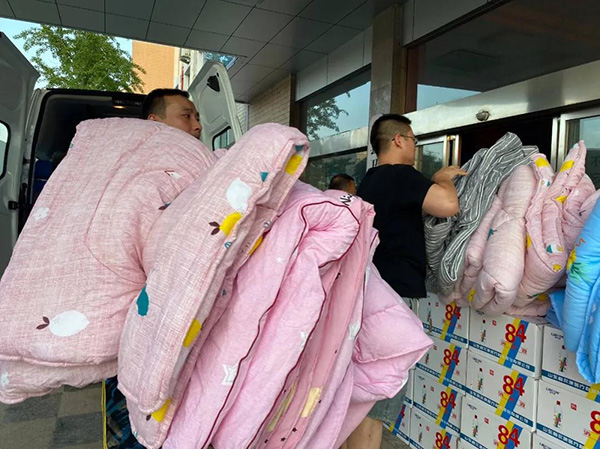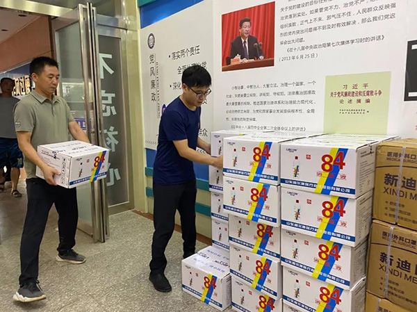 7月24日下午,河南誉美肾病医院将筹集的棉被、消毒用品、食物等赈灾物资运送到淇县红十字会,为防汛救灾工作贡献自己的力量。